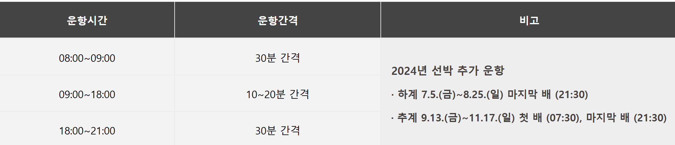※ 상황에 따라 운영시간이 변동될 수 있습니다. (봄꽃철/휴가철/단풍철 연장운항)