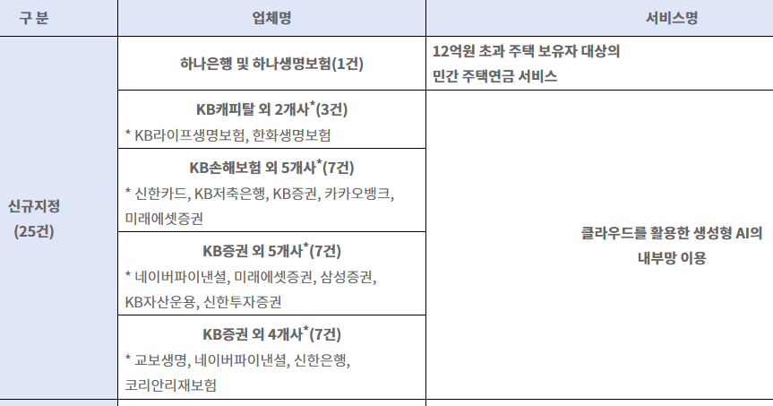 금융위원회의 혁신금융서비스 지정: 금융위원회는 하나은행과 하나생명이 신청한 민간 주택연금 서비스를 혁신금융서비스로 지정하였습니다. 이로 인해 기존 주택금융공사의 주택연금 가입이 불가능했던 고령 가구가 민간에서 제공하는 주택연금을 이용할 수 있게 되었습니다