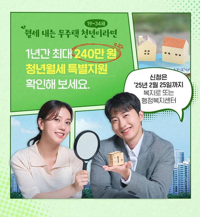 2030 청년의 지출 부담 1순위가 '주거비'라는 조사 결과가 있었습니다. 이런 청년들의 주거비 부담을 덜어드리기 위해 정부에서는 2023년부터 매월 최대 20만 원, 1년간 최대 240만 원의 월세를 지원해 드리고 있습니다. 신청은 2025년 2월 25일까지이며, 1차 지원을 받은 사람도 지원이 끝났다면 추가로 신청할 수 있습니다. 기한 놓치지 않도록 유의하세요.